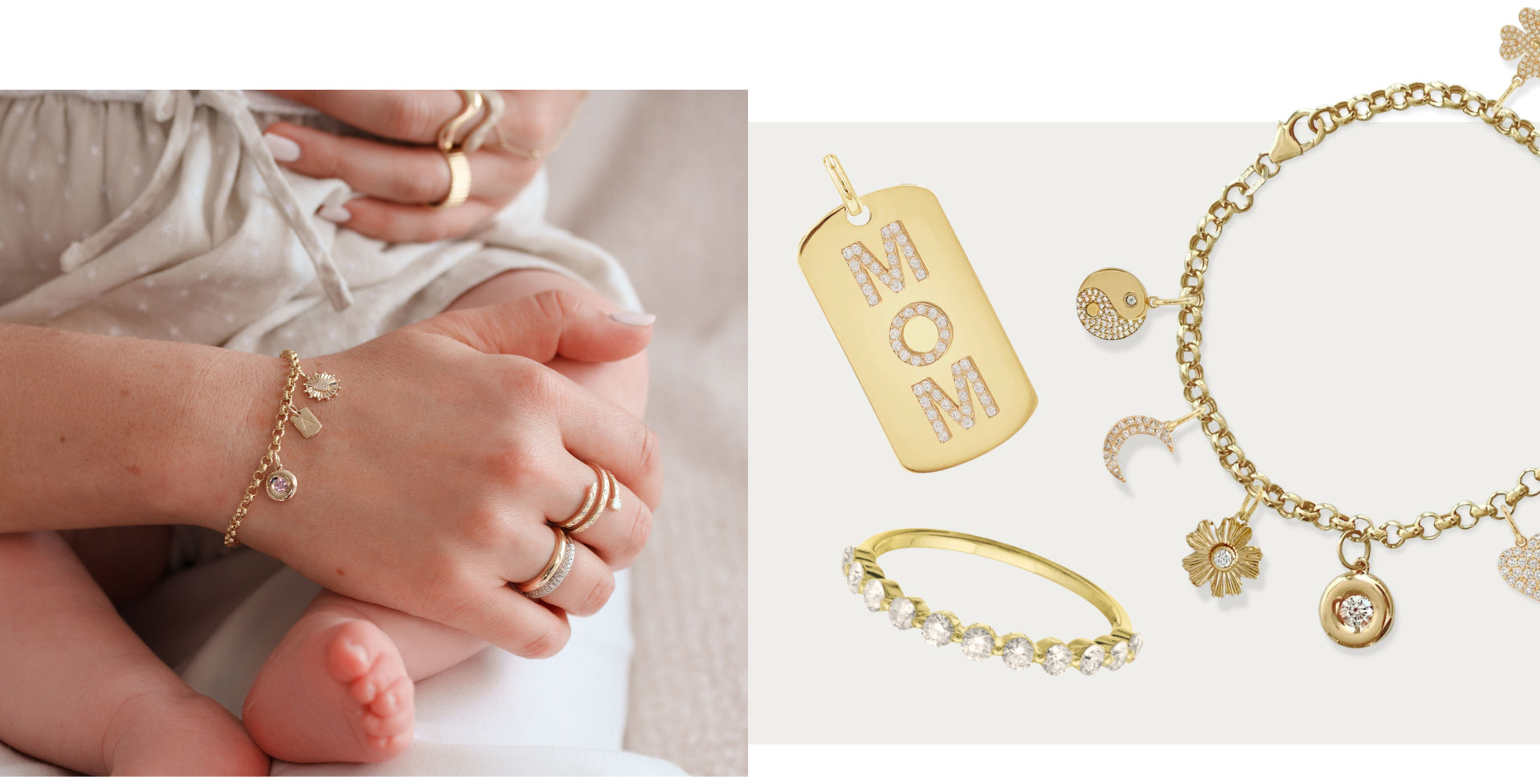 A sleek 14k gold bracelet is always in style. Perfect for everyday wear, it can be layered with other pieces or expanded over time—creating the feel of custom mom’s jewelry that evolves with her story.