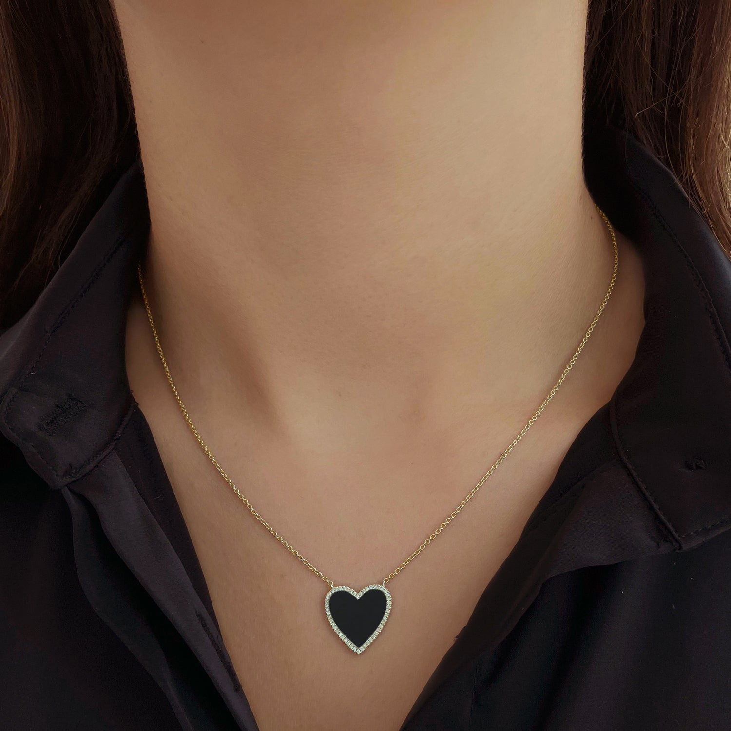 Large Pave Outline Stone Heart Necklace