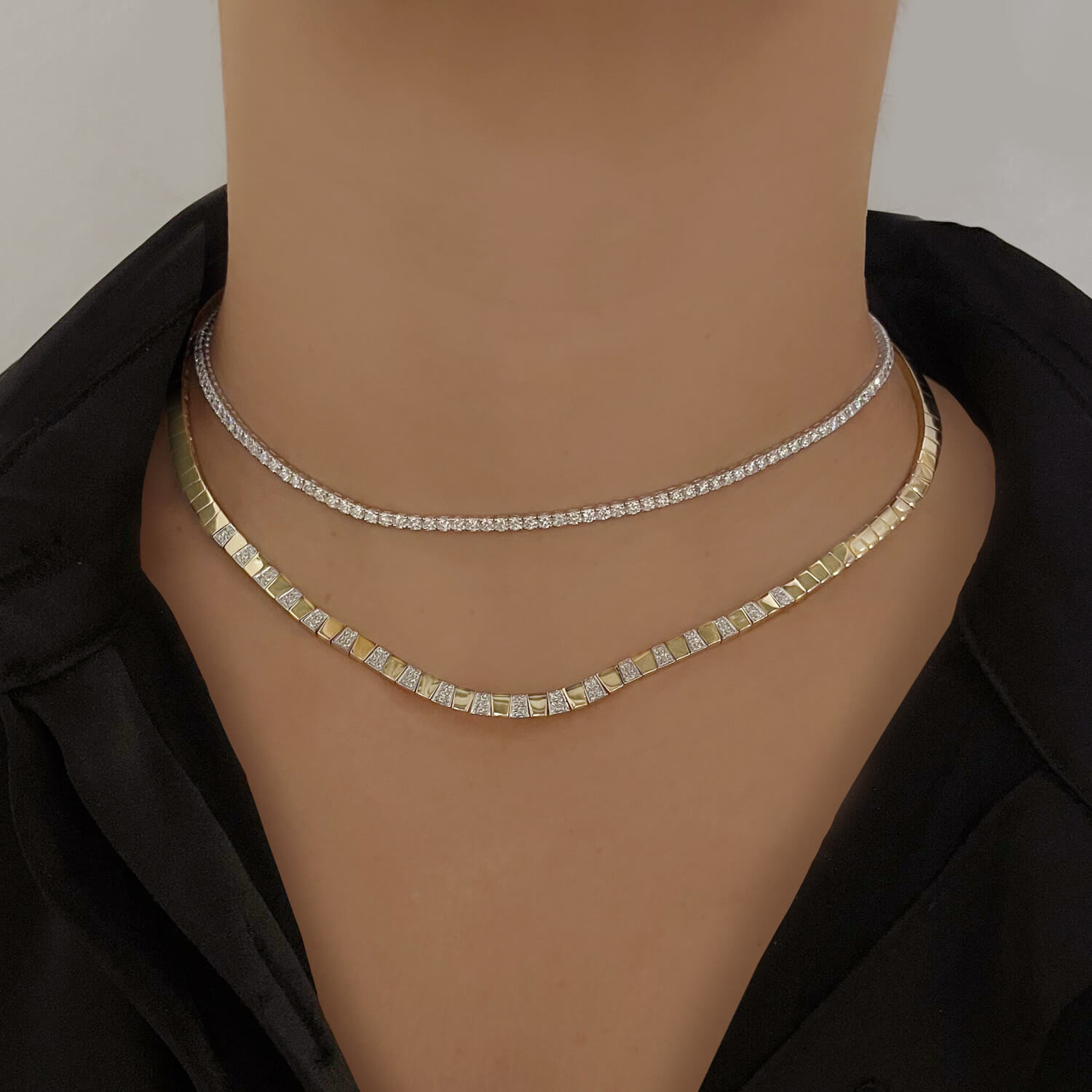 Diamond Tennis Choker with brilliant stones in 14k gold, a timeless luxury jewelry essential