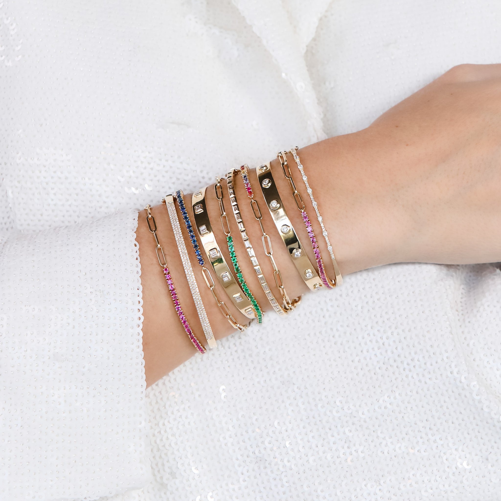 Half & Half Gemstone Tennis Paperclip Bracelet