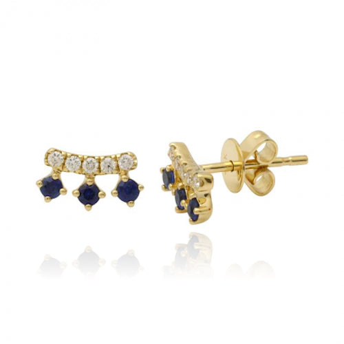Diamond Bar and Three Gemstones Stud Earrings