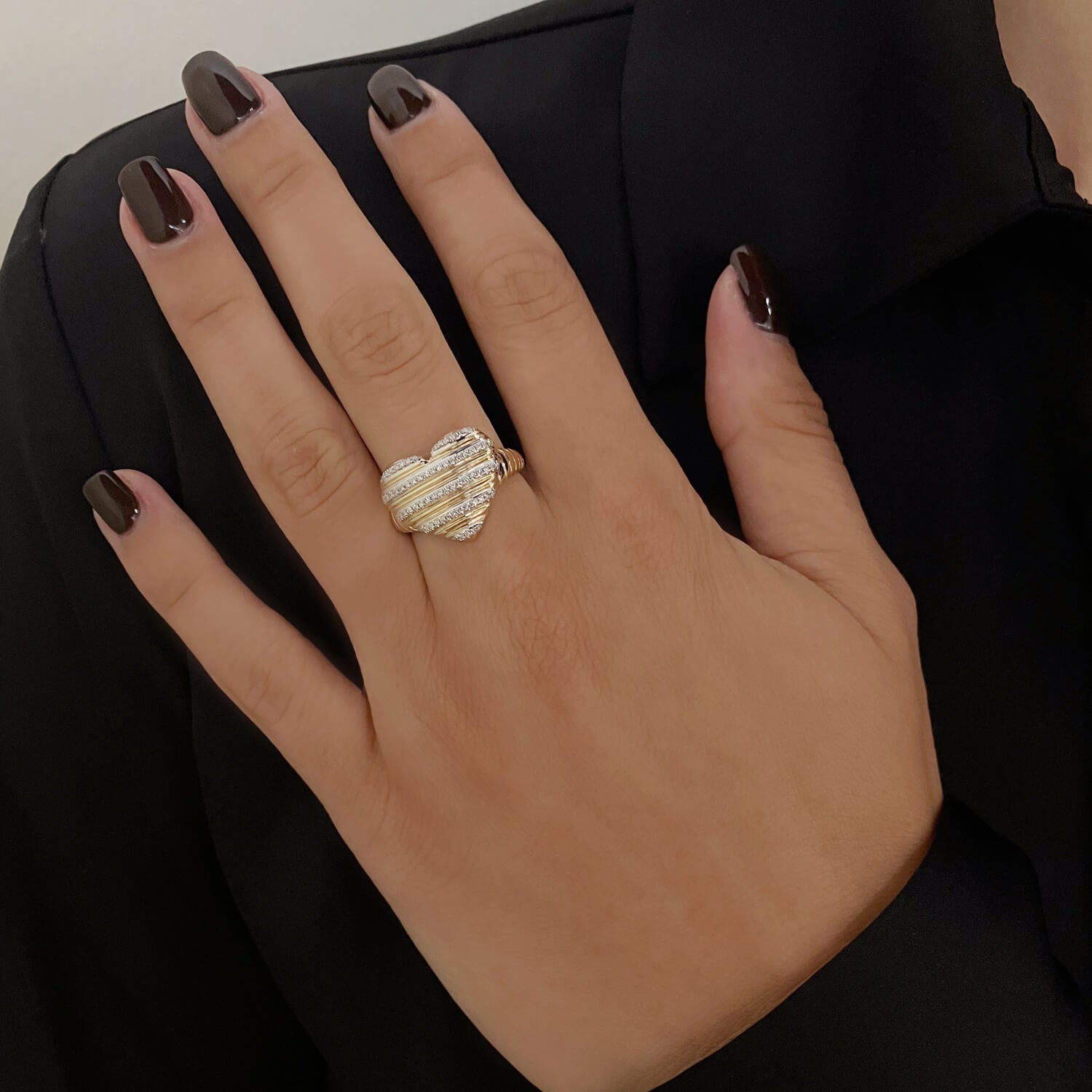 Ribbed Pave Heart Ring