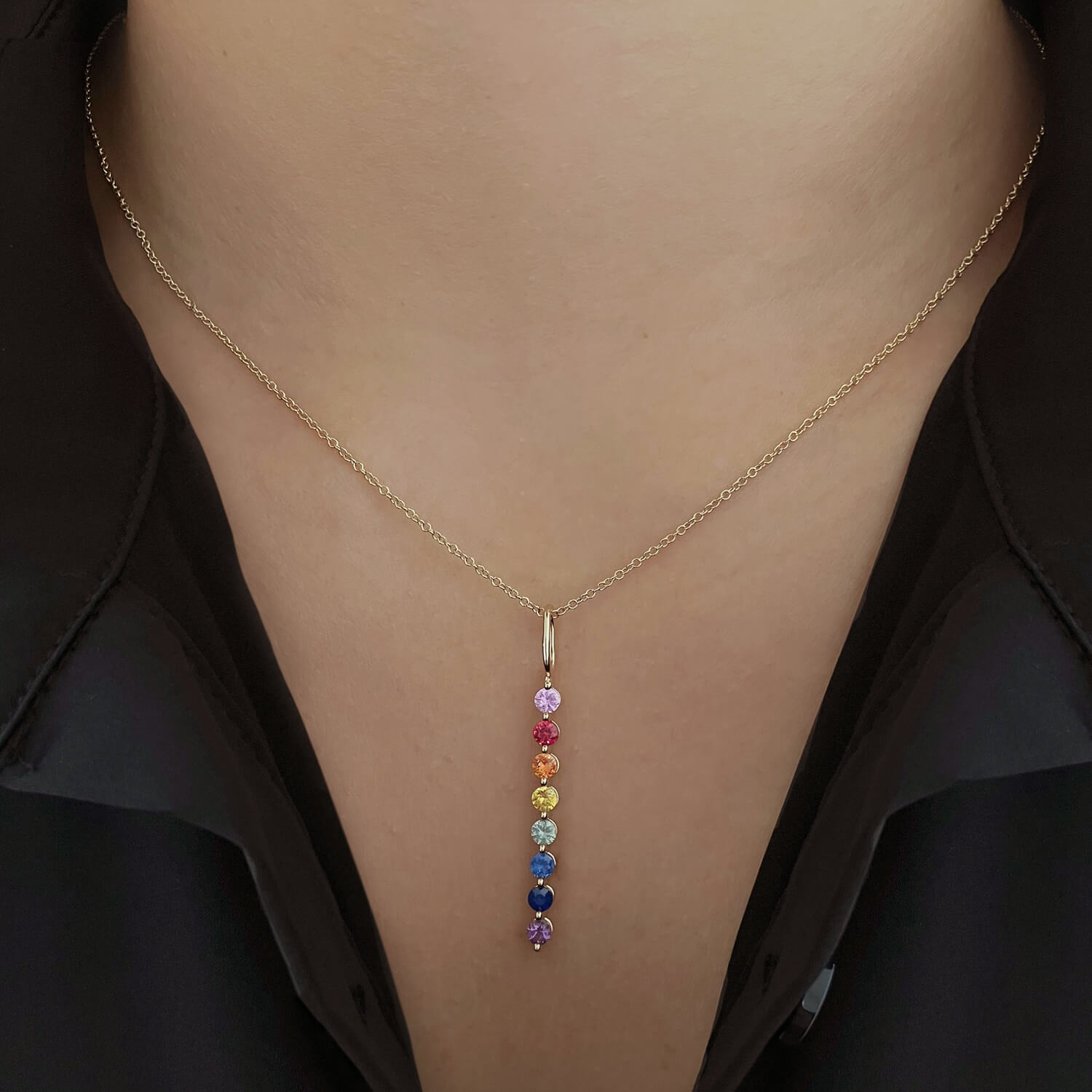 Available in 14k Yellow Gold, 14k White Gold, and 14k Rose Gold. Multi Colored Sapphires